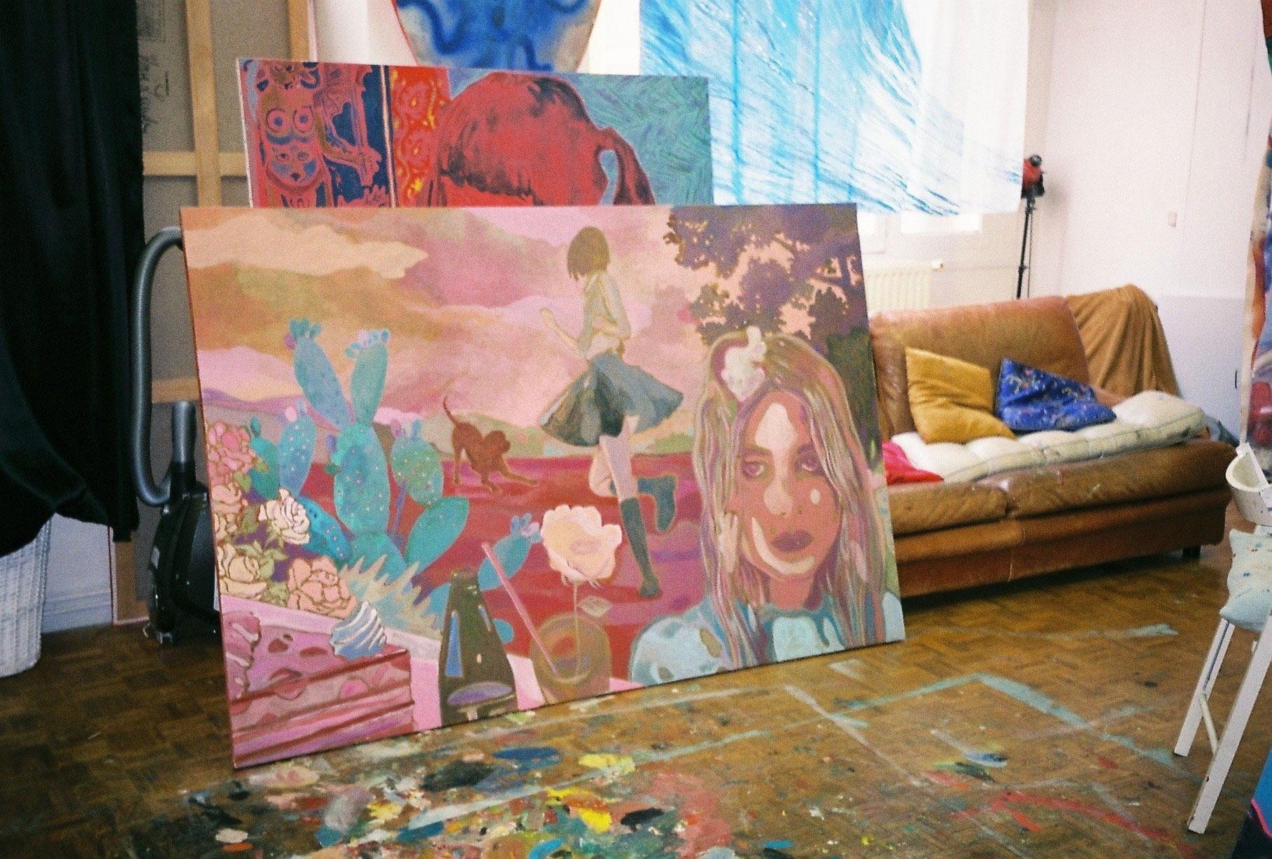 Being part of a lineage of renowned artists, artist Marcella Barceló has been in contact with art making since she was a child. This underlying creative link culminates in her work’s autobiographical characteristics, which she projects into her bizarre figures, metamorphosed landscapes, and monstrous-looking animals. Recollecting her earliest memories as being surrounded by books and drawings, she still holds onto them when working in her dreamy Paris-based studio. Her favorite book, Alice in Wonderland is evoked through her choice of psychedelic colours, surreal compositions and the abundance of wildlife, comprising a palm-sized centipede and an authoritarian-looking crow to name a few. Marcella shapes her own fantasies of mythological creatures and quirky figures through a solitary process, a particular working routine which unveils one of her major personality traits: her shyness, which is also emphasized by adopting ‘Jenny Haniver’ as her Instagram handle and alter ego, a name associated with a mummified fish specimen. This interview is an opportunity to get to know the well-kept secret of Marcella’s wonderland world hiding inside her studio-apartment.